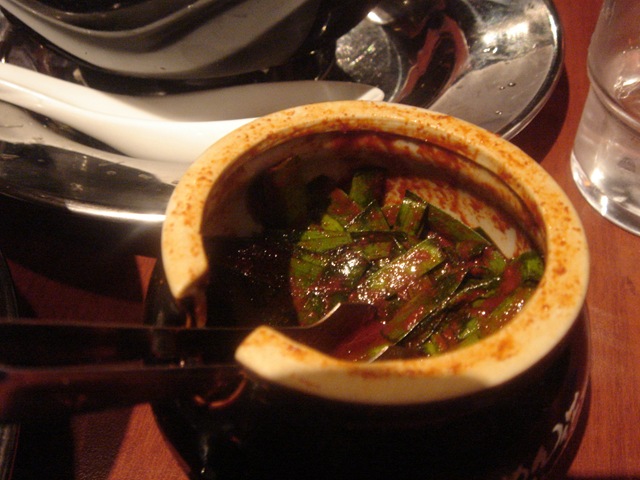 韭菜辣醬 特殊的辣味,韭菜加上日式辣椒醬,口味相當的特殊,可加入湯頭或配飯吃