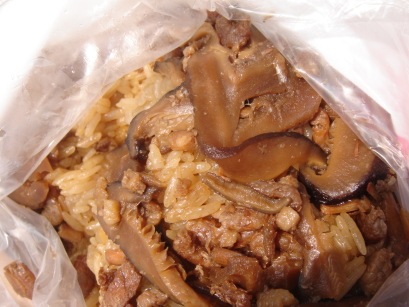 然後將蝦米、鮮肉及香菇,加上經過數小時熬煮的滷肉汁,與蒸好8分熟的蓬萊米一起炒勻,使米粒吸足肉汁,所以煮出來的油飯口感香而不膩,吃起來不油不膩,比起五星級大飯店或是其他常吃的油飯好吃太多,我常常帶我的異國朋友來吃這家油飯,沒有一個人不豎起大拇指稱讚好吃.