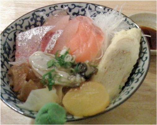 應該是生蠔什錦丼(200元),用手機拍的,顏色焦距有點失真,不錯吃.....